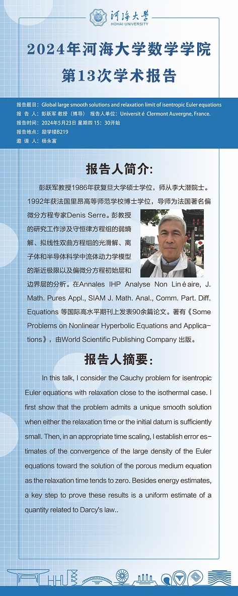 成人影院 第13次学术报告:Global large smooth solutions and relaxation limit of isentropic Euler equations