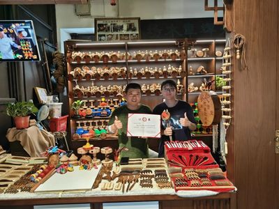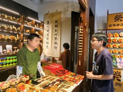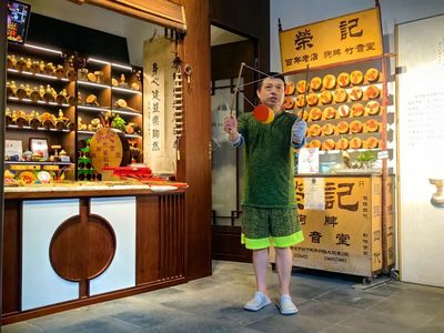 接着,实践团成员在空竹展台前驻足,在“抖空竹”代表性传承人孙光辉师傅的介绍下,实践团成员对抖空竹这一民俗文化有了更加深入的了解。接着,孙师傅热情地向实践团展示了抖空竹技艺。