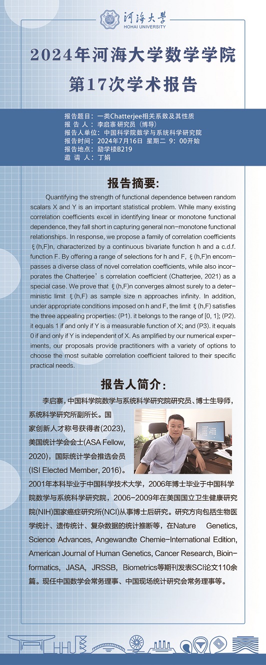 成人影院 第17次学术报告:一类Chatterjee相关系数及其性质