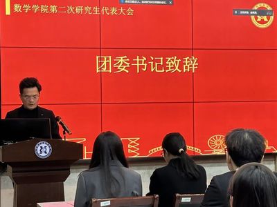 第二次研究生代表大会在国歌声中拉开序幕。首先,由成人影院 团委书记张添烨老师发表致辞,张老师对过去一年研会的工作给予高度肯定,同时对学生组织工作提出三点希望:一是认真学习领会习近平总书记关于青年工作的重要思想;二是加强学习能力,培养创新意识,提升自身工作能力和本领;三是树立远大理想,坚定信念,执着向前。